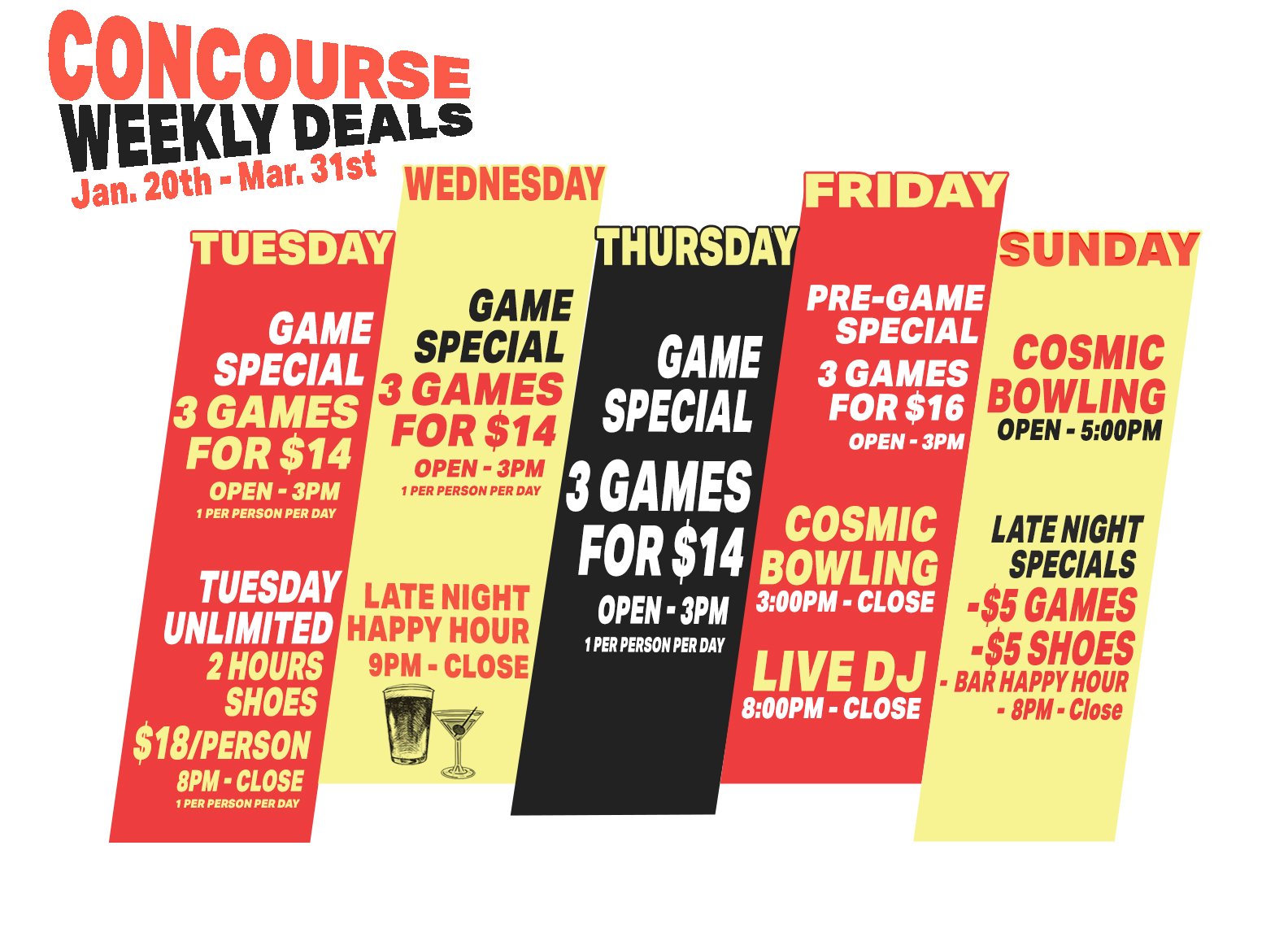 Specials not valid on Holidays